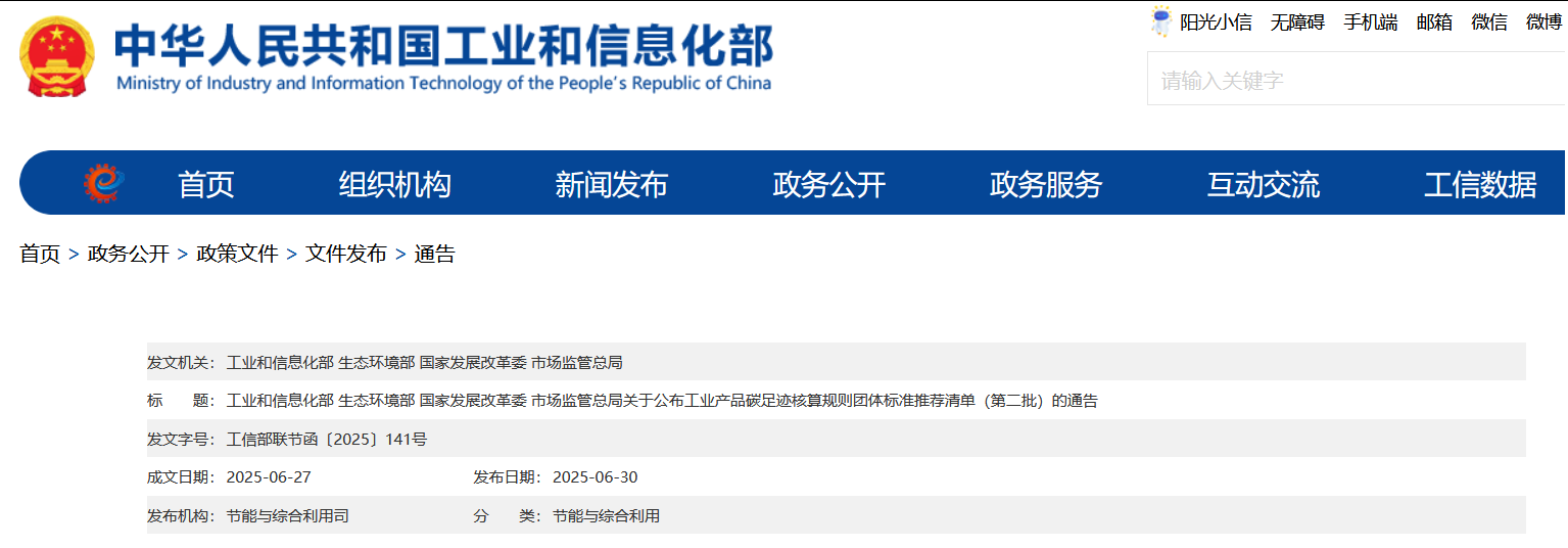 工業(yè)和信息化部等四部門關(guān)于公布工業(yè)產(chǎn)品碳足跡核算規(guī)則團(tuán)體標(biāo)準(zhǔn)推薦清單(第二批)的通告 詳細(xì)>>
